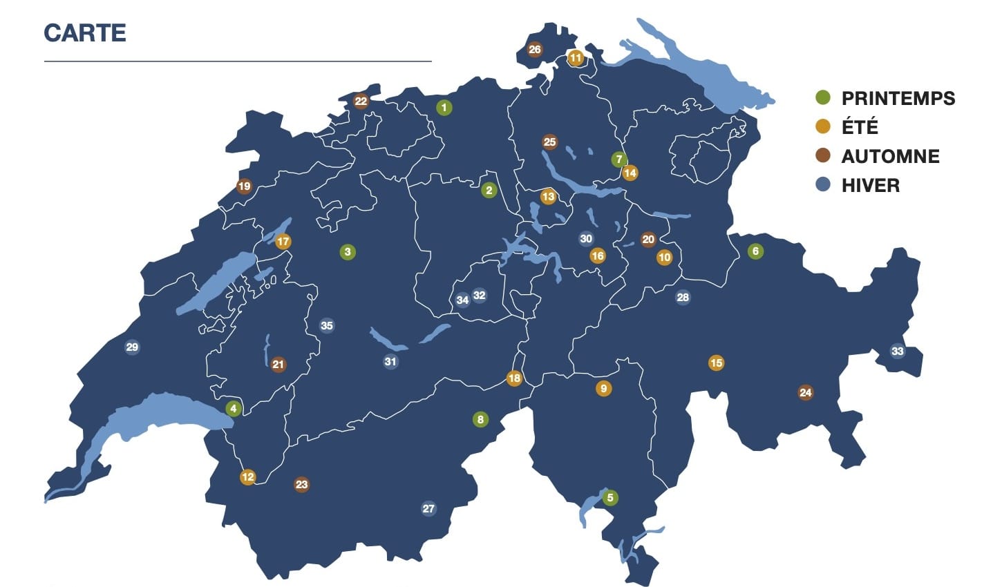 Randos chien Suisse est un guide de 35 balades au travers de la Suisse. A la place d’être divisé par région, il est divisé par saison. C’est ce qui le rend original par rapport à d’autres guides.